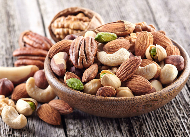 Cho dù loại hạt yêu thích của bạn là hạnh nhân, quả óc chó, quả hồ trăn..., thì đây là một món ăn nhẹ mang lại khả năng chống oxy hóa mạnh mẽ. Các loại hạt chứa vitamin E, rất quan trọng cho làn da khỏe mạnh, ngậm nước, protein, chất béo lành mạnh cũng như các khoáng chất và vitamin khác.