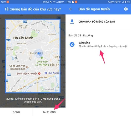 Lúc này, tự động ứng dụng sẽ lựa chọn một khu vực bất kỳ, tuy nhiên bạn có thể thay đổi vị trí, phóng to/thu nhỏ diện tích dễ dàng rồi nhấn Download để tải xuống và chờ một lát cho đến khi quá trình này kết thúc. Lưu ý, Google Maps chỉ cho phép tải về phần bản đồ có diện tích tối đa là 50 x 50 km và những dữ liệu này sẽ tự động bị xóa đi sau 30 ngày.