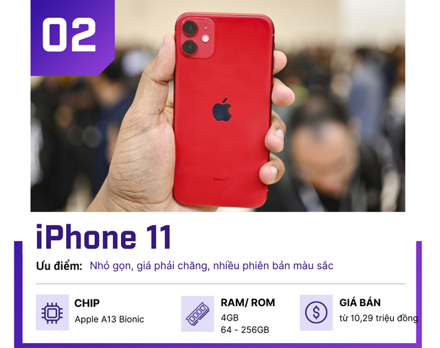 Mức giá iPhone 11 đã chạm xuống mức không thể thấp hơn được nữa. Đây cũng là chiếc iPhone được tìm mua nhiều nhất. Chúng không quá nhỏ như iPhone 13 Mini và không cũ kỹ như iPhone SE. Màn hình 6,1 inch + chip A13 Bionic đảm bảo xử lý "ngon" mọi tác vụ thông thường.