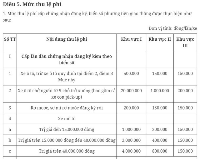 Điều 5 Thông tư 60 quy định về mức lệ phí cấp chứng nhận đăng ký và biển số xe