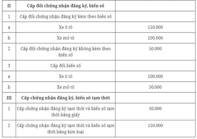 Nếu không thuộc trường hợp được miễn lệ phí nêu trên, cá nhân, tổ chức sẽ phải nộp lệ phí cấp chứng nhận đăng ký, biển số phương tiện giao thông với mức thu từ 50.000 đồng cho đến 20 triệu đồng tùy từng trường hợp theo quy định tại Điều 5 Thông tư 60/2023.
