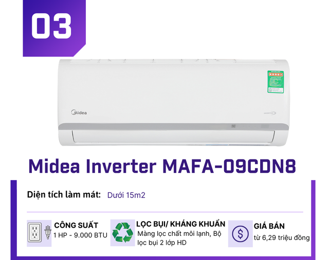 3. Điều hoà Midea Inverter 1 HP MAFA-09CDN8