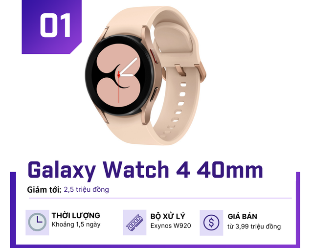 Được ra mắt vào năm 2021, giá bán của Galaxy Watch 4 40mm đang giảm xuống mức cực thấp. Khách hàng mua chúng sẽ tiết kiệm một khoản không nhỏ.