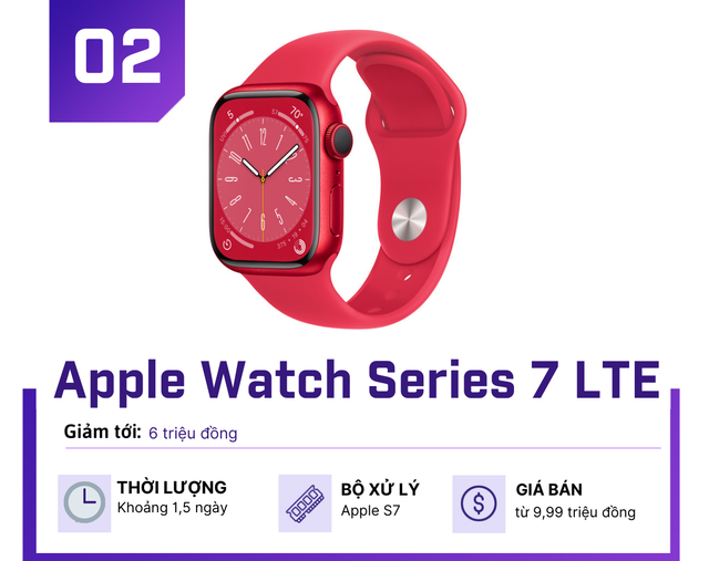 Sở hữu phong cách thiết kế không khác so với Apple Watch Series 8 mới hơn, Apple Watch Series 7 LTE cũng được đánh giá cao, giá bán lại "mềm" hơn khá nhiều. Đồng hồ có 2 kích cỡ: 41mm và 45mm, tích hợp chip xử lý S7 mạnh mẽ, có thể sử dụng trong thời gian dài.