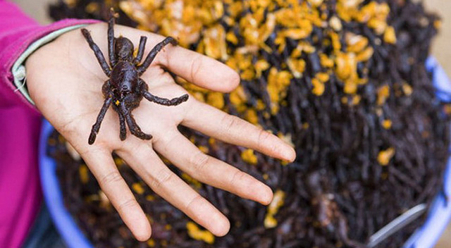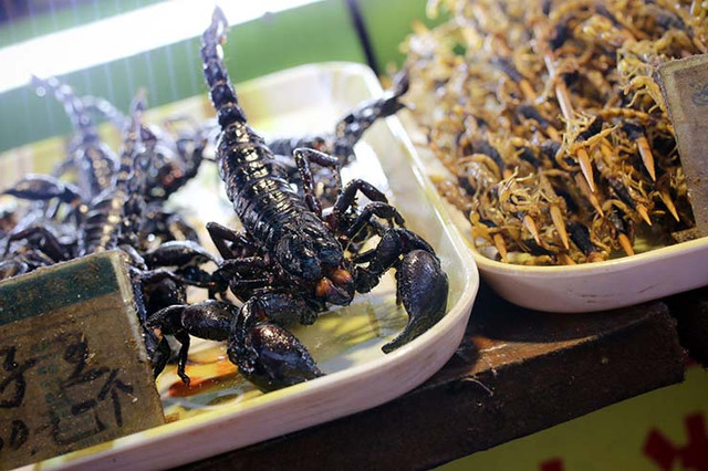Angelina Jolie đã thử cảm giác thích thú với bọ cạp và nhện tarantula trong chuyến đi đến đất nước này vào năm 2016. Những con bọ cạp được xiên vào que rồi nướng hoặc chiên, được xem như một món ăn giàu protein.