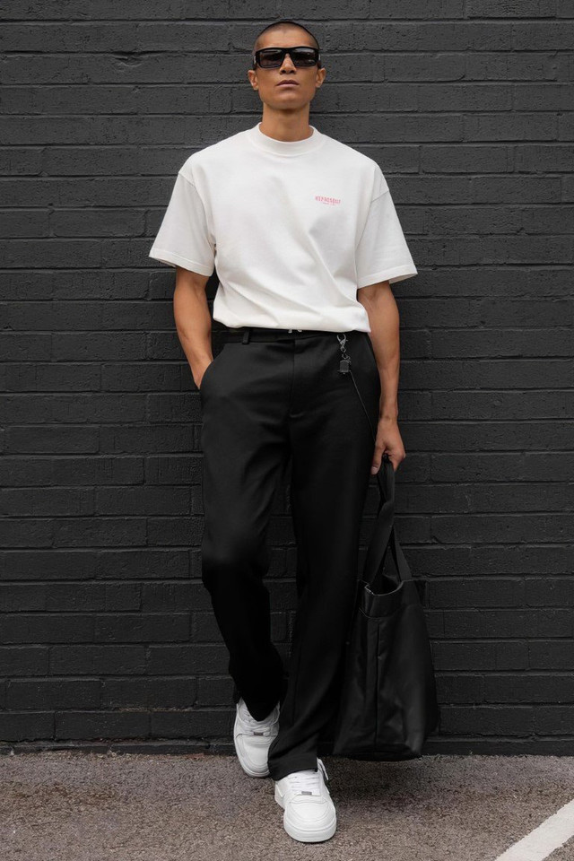 Để tối đa hóa tiềm năng của nó, bạn nên giữ tỷ lệ ở khoảng 70/30, bất kể bạn làm theo cách nào. Tránh đi theo phong cách ngựa vằn (mũ đen, áo trắng, quần đen, giày trắng,...) mà thay vào đó hãy chọn một món đồ đen/trắng trong khi giữ cho phần còn lại của trang phục có màu đối lập.