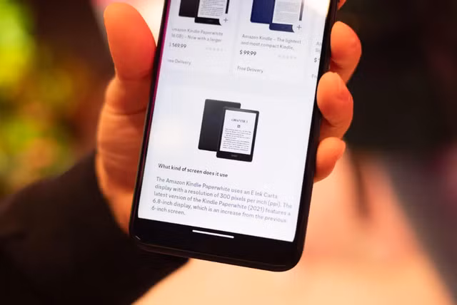 Ví dụ, bằng cách ấn ngón tay cái lên chiếc Kindle được gợi ý trong kết quả mua sắm , người dùng có thể yêu cầu T Phone mở video mở hộp. Màn hình sẽ chia đôi ở giữa và video YouTube xuất hiện ở nửa dưới. Người dùng có thể tiếp tục đặt câu hỏi: màn hình có kích thước bao nhiêu, đánh giá, so sánh với các sản phẩm khác. Mỗi lần như vậy, giao diện sẽ được điều chỉnh để theo kịp các truy vấn của người dùng.