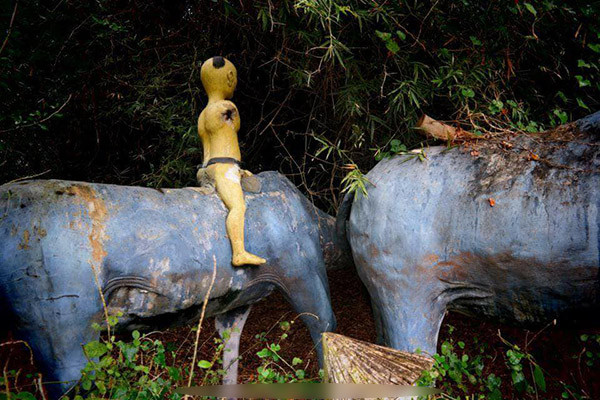 Thật ra thì trước đây nó cũng bình thường thôi, nhìn mắc cười hơn là sợ. Nhưng mà bỏ hoang lâu nên giờ nhìn creepy như vầy. Chỗ này lúc còn hoạt động khá là đông khách và nổi tiếng, sau này do vợ chồng nhà này li hôn nên đóng cửa cái này luôn. Phía trước có cái khách sạn trắng còn đang xây dở, nhìn cái khách sạn này còn ghê hơn mấy bức tượng...', bạn B.C.N chia sẻ.
