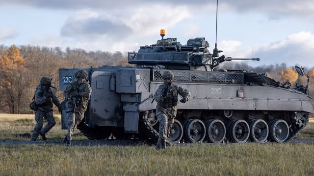 Lính công binh điều khiển nguyên mẫu biến thể thiết giáp Warior phá mìn từ xa.