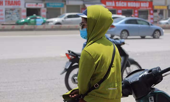 Không chỉ phụ nữ, ngay cả đàn ông khi ra đường những ngày này phải mặc đồ chống nắng kín người.