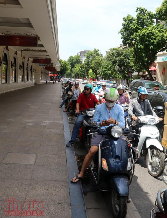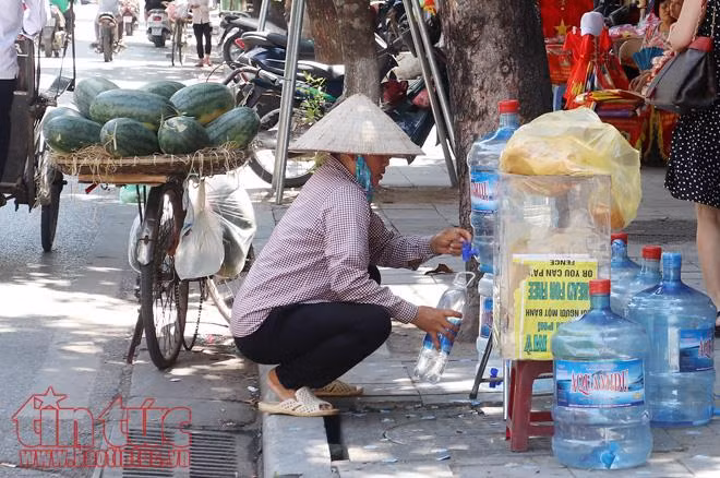Mới từ sáng đên 11 giờ trưa, một gia đình ở 36 Hàng Bông tặng nước uống miễn phí cho người đi đường đã dùng hết 5 bình nước.