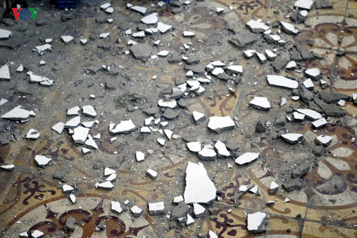 Thầy Đặng Văn Dũng, Phó Hiệu trưởng nhà trường cho biết thường xuyên phải... chọc trần để xác định những mảng trần nhà có nguy cơ bị bong tróc, rơi vữa.
