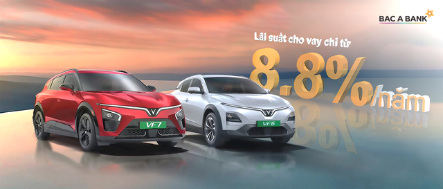 Theo đó, Khách hàng có nhu cầu vay mua ô tô điện VinFast để phục vụ đi lại hoặc kinh doanh có thể lựa chọn gói tín dụng hấp dẫn từ BAC A BANK: thế chấp bằng chính xe mua với mức vay tối đa lên đến 70% giá trị xe, thời hạn vay tối thiểu 60 tháng với lãi suất ưu đãi chỉ từ 8,8%/năm trong 12 tháng đầu tiên.
