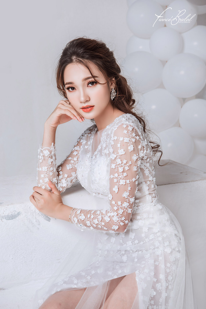 Cô bạn xinh đẹp tựa thiên thần trong chiếc váy cưới được thiết kế hoa.