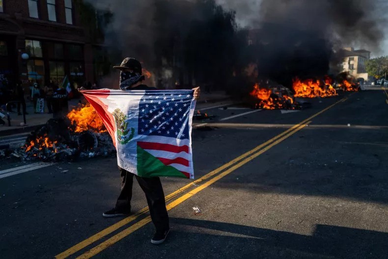 Theo Newsweek, khi bạo lực bùng phát tại Los Angeles, bang California, vào cuối tuần qua liên quan đến các cuộc biểu tình phản đối chính sách cưỡng chế nhập cư, hình ảnh người biểu tình vẫy cờ Mexico đã trở thành tâm điểm chú ý của truyền thông và phản ứng từ chính quyền ông Trump.