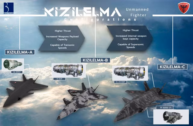 Bayraktar Kizilelma là máy bay chiến đấu không người lái có thể hoạt động độc lập hoặc kết hợp với tiêm kích KAAN thế hệ thứ năm của Thổ Nhĩ Kỳ.