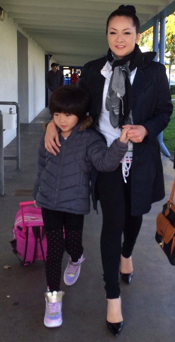 Khi không phải đi diễn, nữ ca sĩ dành thời gian để ở bên con.