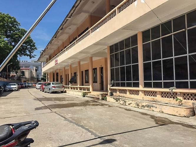 Đằng sau là tòa nhà cao 4 tầng bỏ hoang.