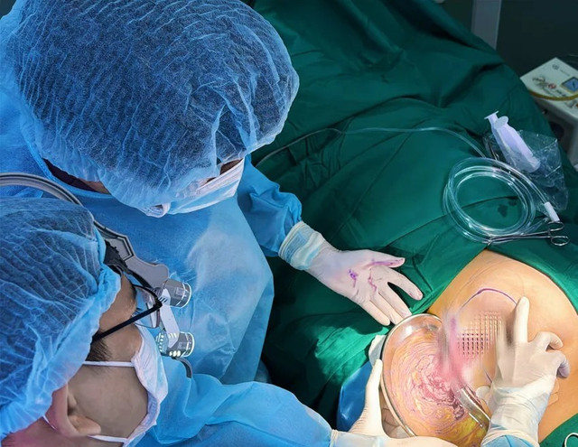 Diễn tiến bệnh của bệnh nhân rất nhanh, áp xe di chuyển xuống phần giữa đùi, gần đến âm hộ, bệnh viện hội chẩn toàn viện, chỉ định phải phẫu thuật xử lý khối áp xe sớm cho người bệnh. Trong quá trình phẫu thuật, dẫn lưu áp xe, các bác sĩ đã lấy ra lượng mủ khoảng 350ml, dịch mủ màu nâu. Mỗi lần thay băng, nạo dịch mủ, gây đau đớn cho người bệnh.