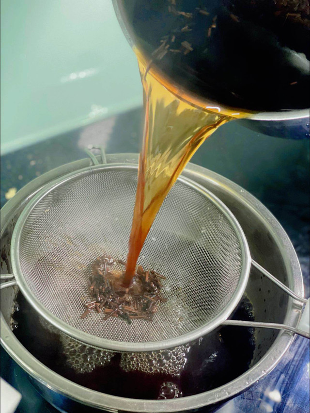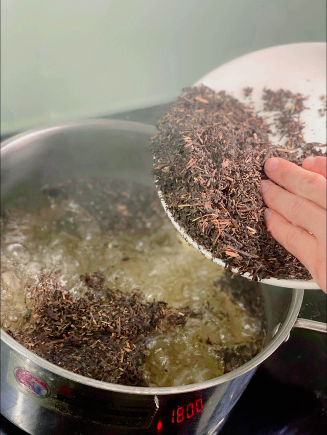 Đun sôi nước, cho trà vào đun ở nhiệt độ trung bình tầm 5 phút, đậy nắp, tắt bếp để hãm trà trong 20 phút.