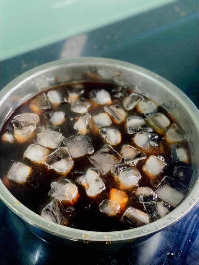 Trà sau khi hãm, thêm đá lạnh trực tiếp vào ngay khi trà còn nóng. Bước này giúp trà giữ được hương thơm.