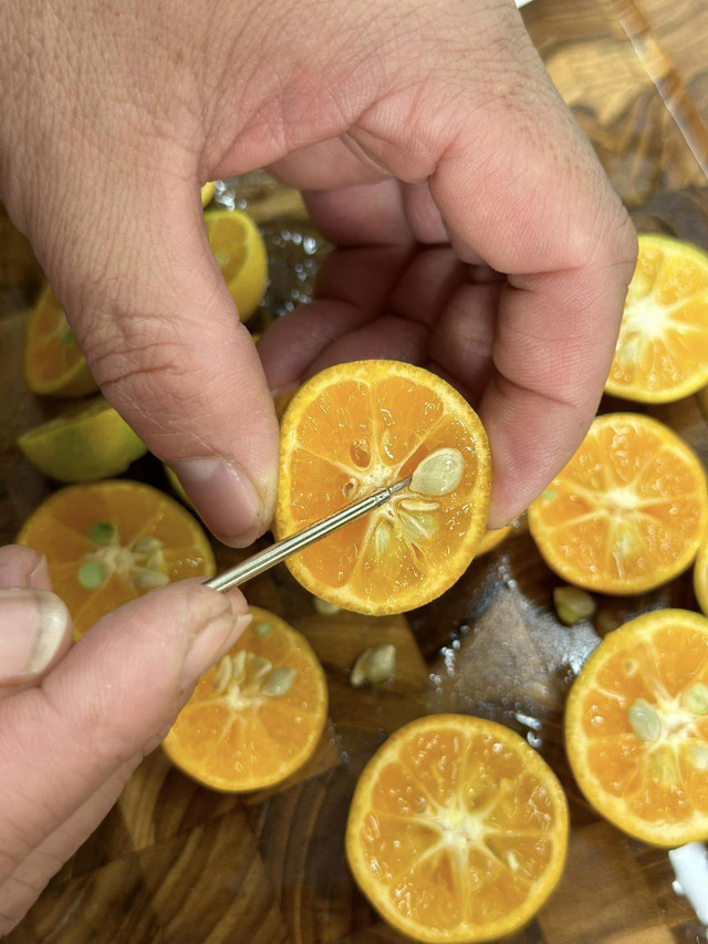 Quất thái miếng, bỏ hạt.