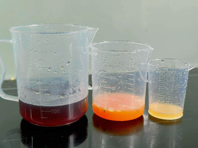 Pha trà theo tỉ lệ: 170ml trà đen, 10ml cốt nước quất, 50ml cốt trái cây.