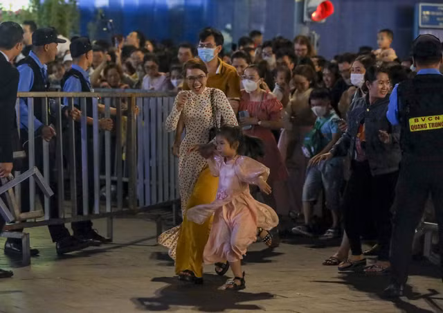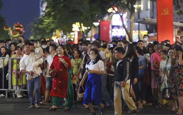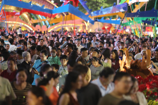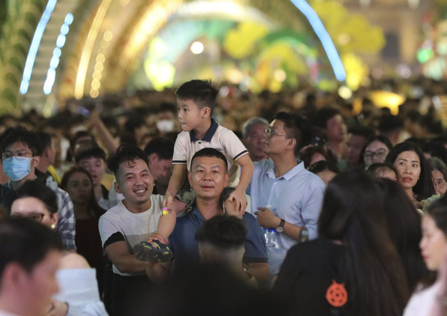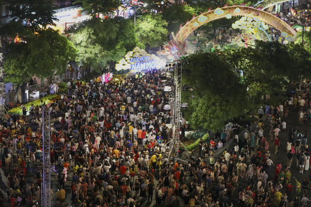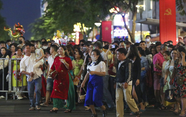 Từ đầu giờ tối, hàng nghìn người dân và du khách đổ về hai bên phố đi bộ Nguyễn Huệ để theo dõi chương trình khai mạc, và háo hức chờ vào tham quan đường hoa.