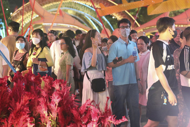 Thời tiết mát mẻ tại TP.HCM vào buổi tối giúp người dân du xuân, thưởng lãm đường hoa được trọn vẹn hơn.