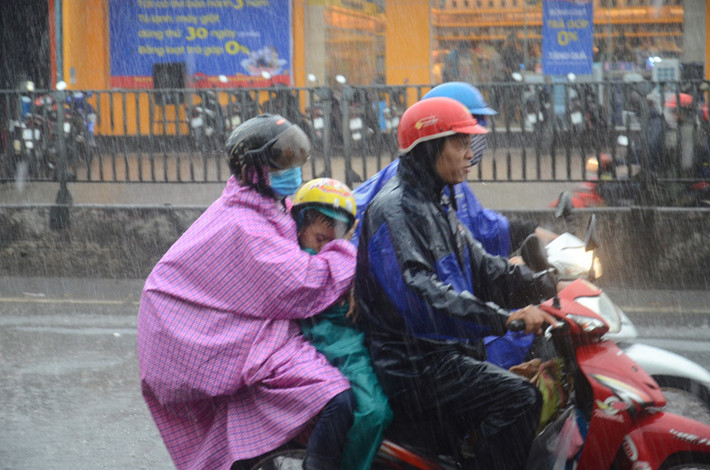 Khoảng 16h trời bắt đầu kéo mây đen u ám, cơn mưa như trút nước đổ xuống qua khu vực khiến nhiều người và các em nhỏ càng vật vã.