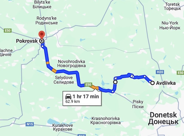 Thành phố Pokrovsk cách Avdiivka khoảng 60km.