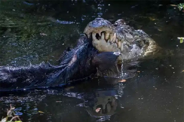 Khi con lợn rừng đã chết, con cá sấu vẫn tiếp tục đưa xác nó nổi lên trên mặt nước, ngoặm đầu và tiếp tục cắn xé chiến lợi phẩm. Công cuộc làm thịt con mồi của sát thủ đầm lầy kéo dài 50 phút.