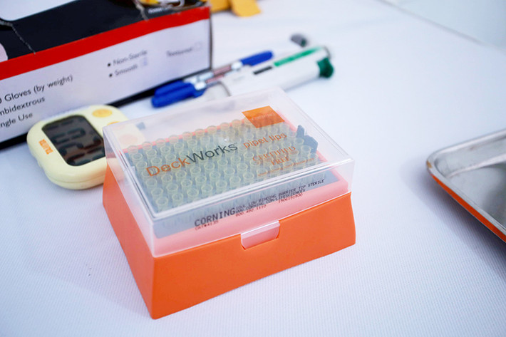Sau khi nhận được mẫu máu, xét nghiệm với bộ Kit test nhanh được tiến hành.