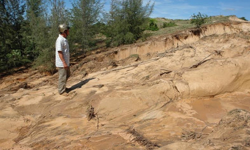 Nước từ trên cao đổ xuống, xé toạc đồi cát, hình thành dòng nước lũ cuốn theo đất cát tràn ngập cả một khu vực rộng lớn.