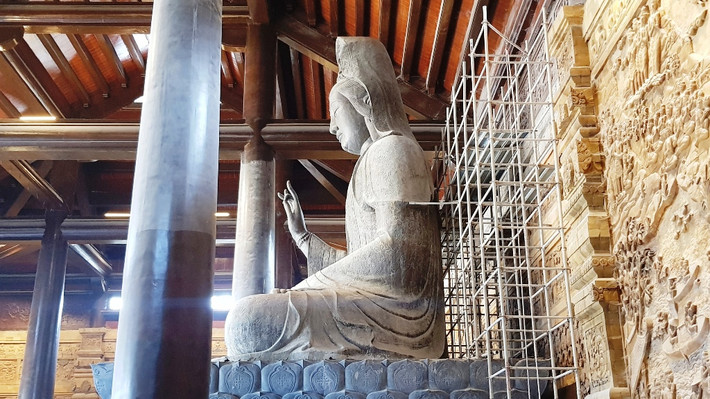 Vật liệu tập kết đầy trong điện Pháp Chủ.