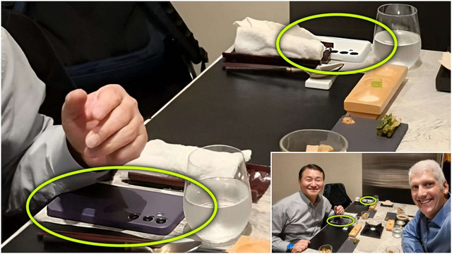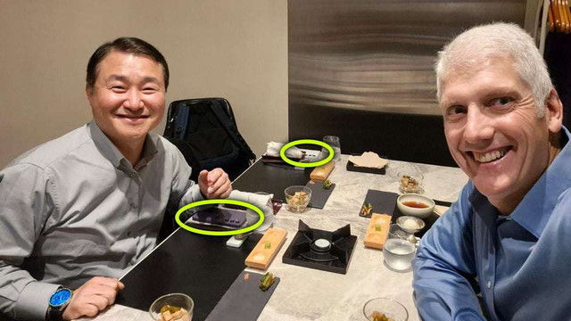 Hình ảnh cũng cho thấy một chiếc Galaxy S24 hoặc Galaxy S24+ màu trắng nằm ở góc ngoài cùng bên trái lãnh đạo Samsung, thuộc về một vị khách bí ẩn khác.