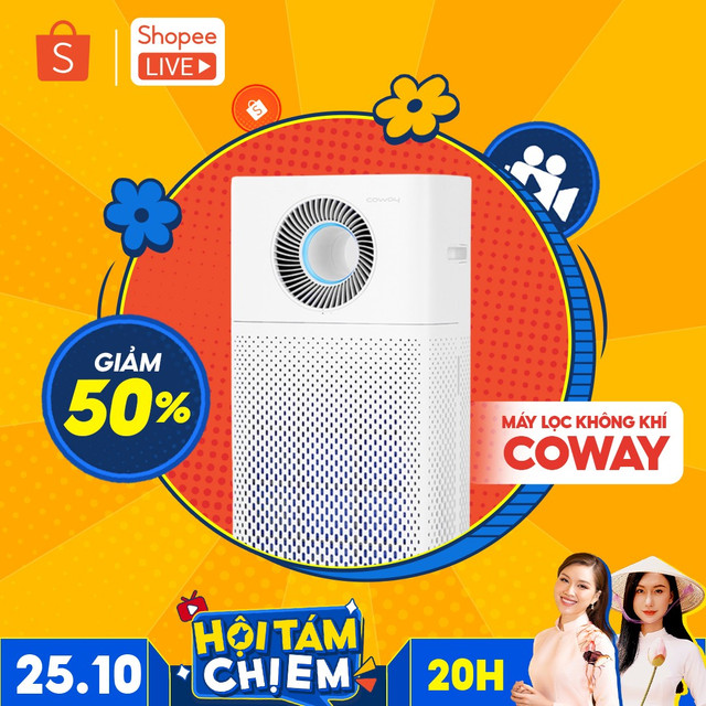Chiếc máy lọc không khí Coway giá 17.000.000 đồng được giảm còn 7.650.000 đồng duy nhất với voucher 50% trên livestream Shopee Live
