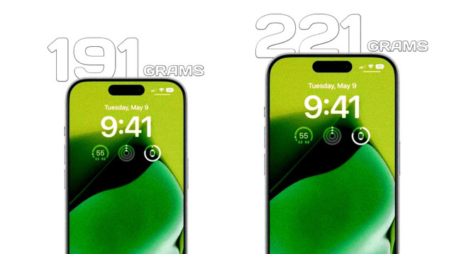 Ước tính, trọng lượng của iPhone 15 Pro và iPhone 15 Pro Max/ iPhone 15 Ultra sẽ lần lượt là 191g và 221g.