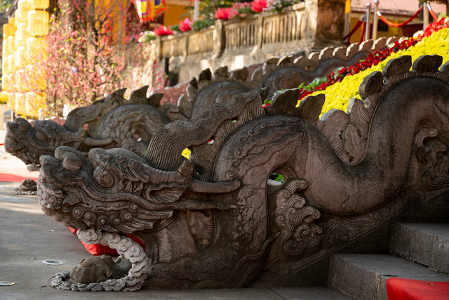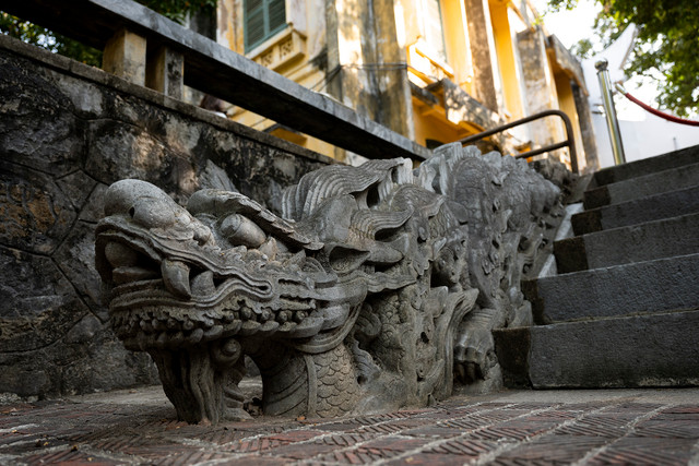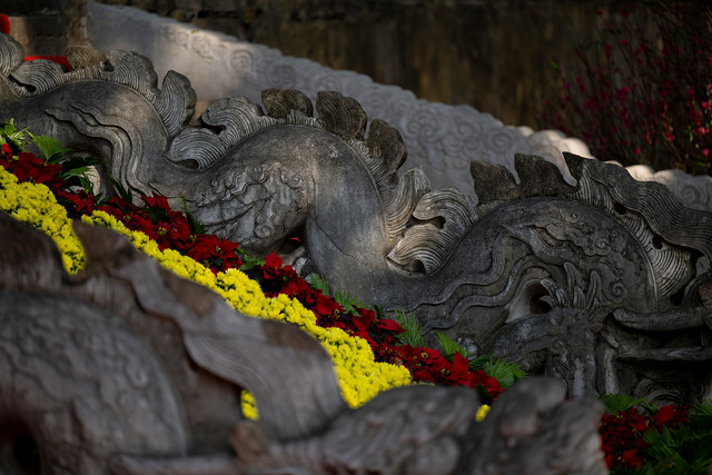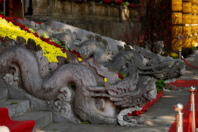 Theo tài liệu lịch sử, thềm rồng đá được xây dựng vào năm 1467 thuộc dòng rồng Đế Vương - là biểu tượng cho quyền lực của nhà vua.