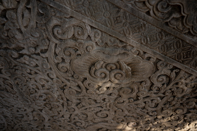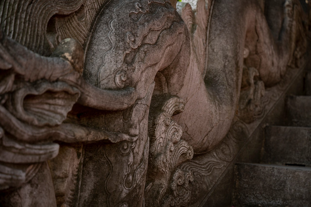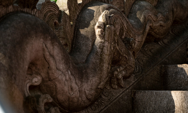 Cũng ở bậc thềm rồng này, còn có 2 lan can cách điệu hình mây hóa rồng ở 2 bên. Đây là hai tảng đá nguyên khối dài 5,3m.