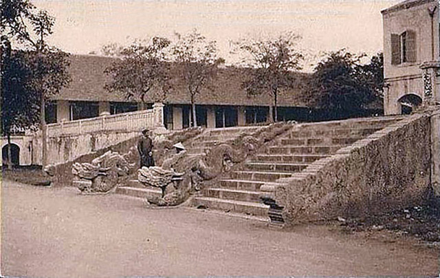 Hình ảnh Thềm rồng điện Kính Thiên, khoảng cuối thế kỷ 19, đầu thế kỷ 20. Năm 1886 người Pháp phá điện để xây nhà sở chỉ huy pháo binh (nguồn: hoangthanhthanglong.com).