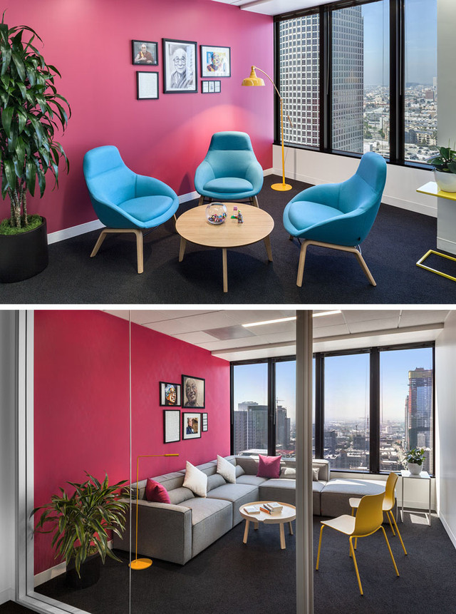 Trong các phòng họp nhỏ hơn, những màu sắc sặc sỡ như hồng tím được sử dụng để tạo nên sự sôi nổi, năng động. Có thể nói, đây là văn phòng trong mơ của nhiều người, không chỉ vì sự sáng tạo trong thiết kế mà còn sự chu đáo của nhà thiết kế với nhu cầu của người sử dụng.