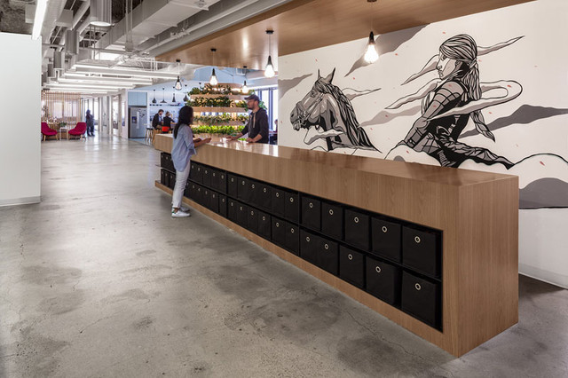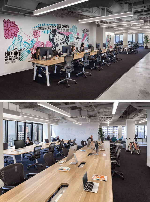 Trong khu vực làm việc của văn phòng, để giúp tường trắng bớt nhàm chán, đơn điệu, một họa sỹ nghệ thuật đường phố Jose Carrillo đã được mời thể hiện sự sáng tạo của mình.