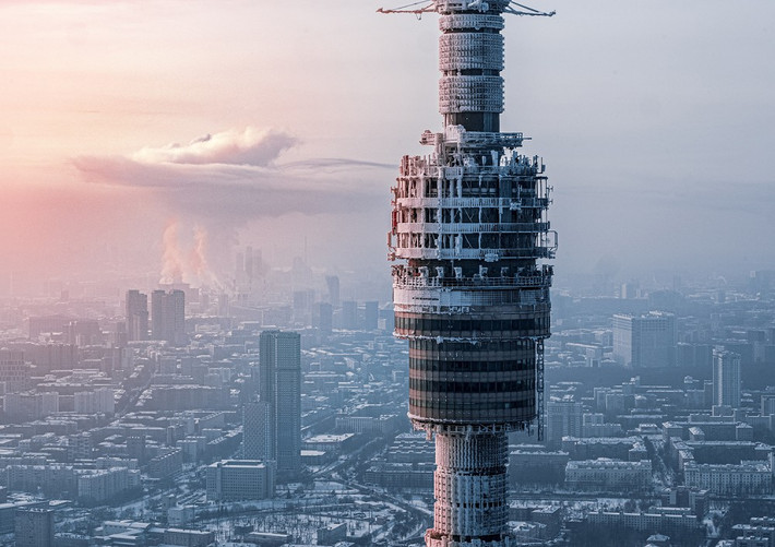Toàn cảnh thành phố rộng lớn xen kẽ với những bức ảnh cận cảnh chụp vòng đu quay Mặt trời Moscow, tháp truyền hình Ostankino hay những tòa nhà chọc trời của khu thương mại được bao phủ trong sương mù...