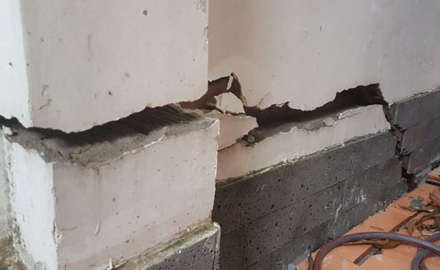 | Việc đóng cọc nhồi khiến nhà dân nứt, mảng bê tông bong tróc. |