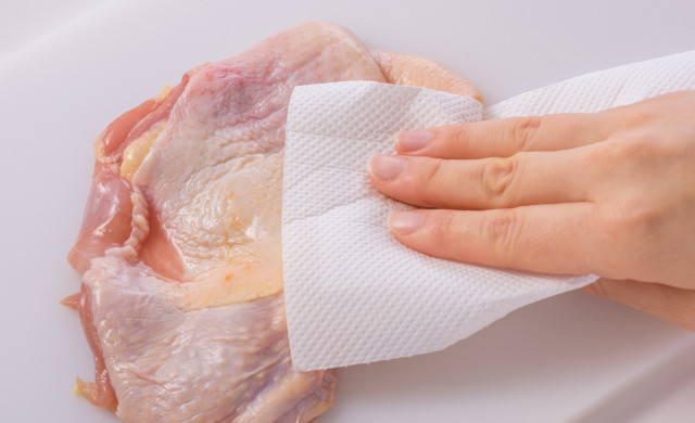 Trong trường hợp bạn không lót giấy khi rã đông, nếu thấy thịt chảy nước, cần lau sạch trước khi sử dụng nấu nướng.