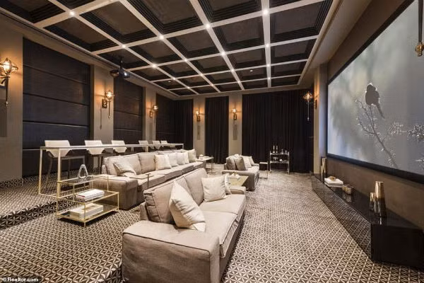Căn nhà có 5 phòng ngủ, phòng chiếu phim và hầm để hàng trăm chai rượu.