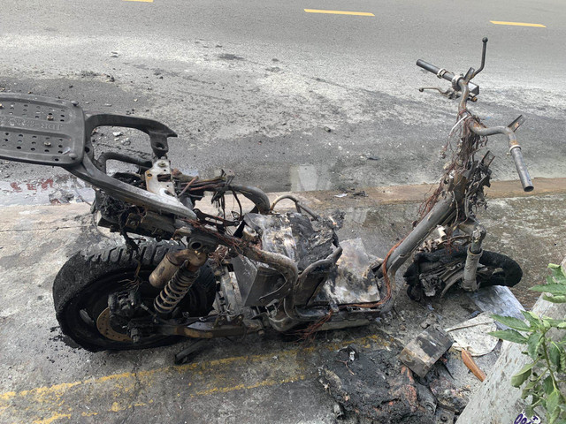 Xe máy điện bị cháy trơ khung