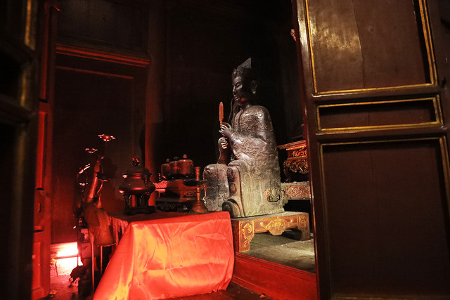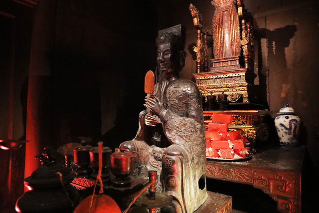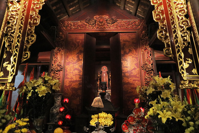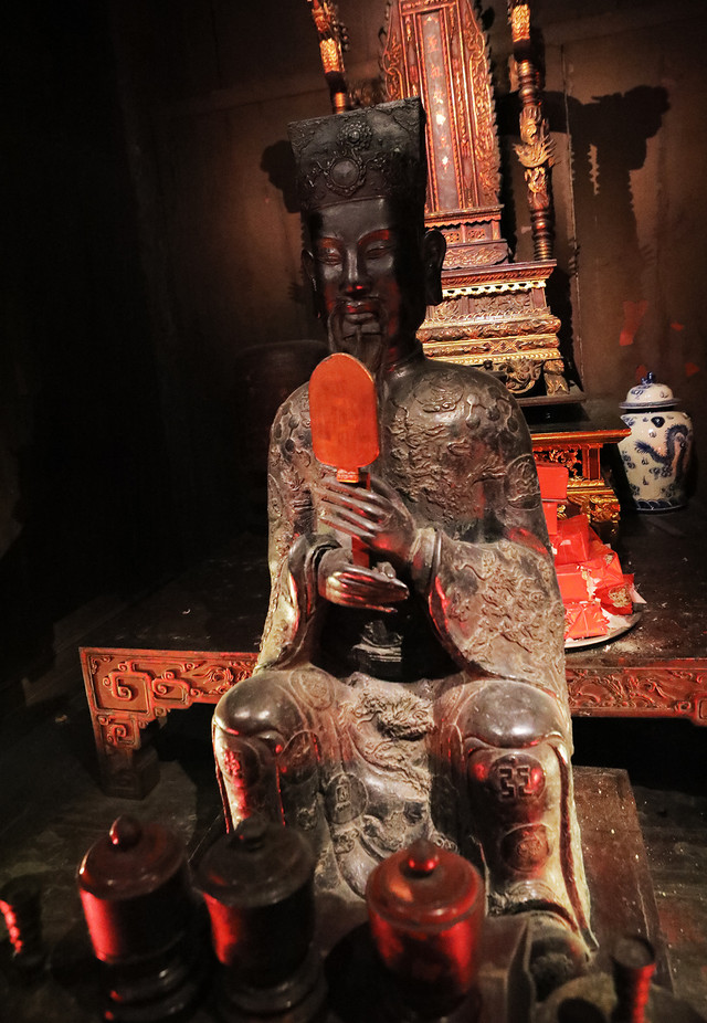 “Hiện đền Thượng chỉ mở một cánh cửa hẹp phần trước mặt cho du khách nhìn thấy từ xa một phần của pho tượng. Vì đây là Bảo vật quốc gia nên Ban quản lý Khu di tích khóa cửa hai bên hông, cử người trông coi rất nghiêm ngặt”, ông Huy cho biết.