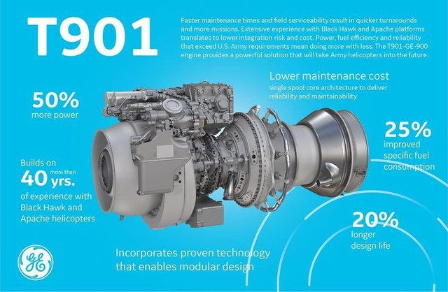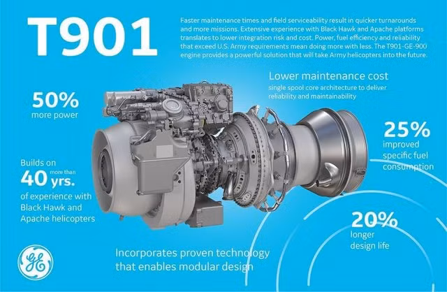 Hiện tại Boeing đang nhắm tới động cơ T901 của GE nhằm tăng 50% sức mạnh cho Apache thế hệ mới. Ảnh: General Electric